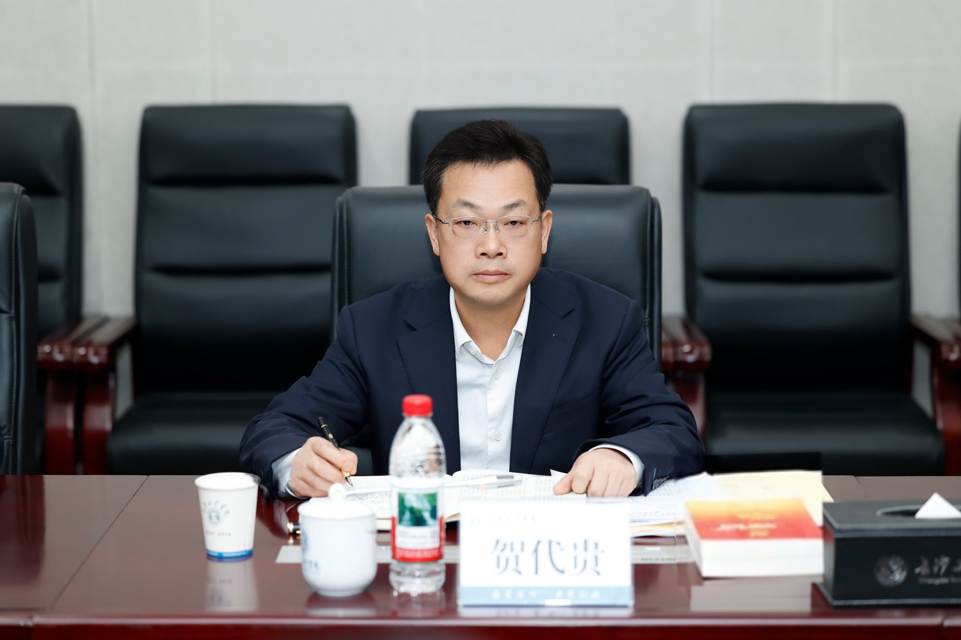 贺代贵强调,要准确把握习近平经济思想精髓,以创新人才引育支撑新发展格局。持续深化产教融合机制,促进成果高效转化。创新人才培养模式,赋能新质生产力发展,孵化更多面向产业的特色学科专业。要贯彻落实全省教育大会精神,为实现“三高四新”美好蓝图贡献学校力量。把握教育“三大属性”,坚守政治性,突出人民性,强化战略性,落实立德树人根本任务。坚持深化“三全育人”,健全育人制度机制。持续推进教育、科技、人才三位一体发展,增强教育服务效能。