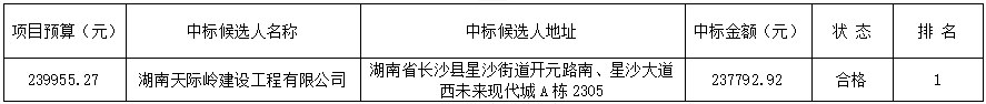 四、废标情况说明:湖南弘运建筑有限公司废标原因:资格性响应文件未递交,资格性审查不通过,该投标单位予以废标。